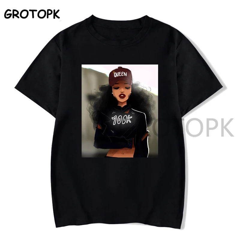 New Black Girl Magic Poppin Female T-shirt Queen Melanin Print Harajuku Hip Hop Rock Black Tshirt Summe